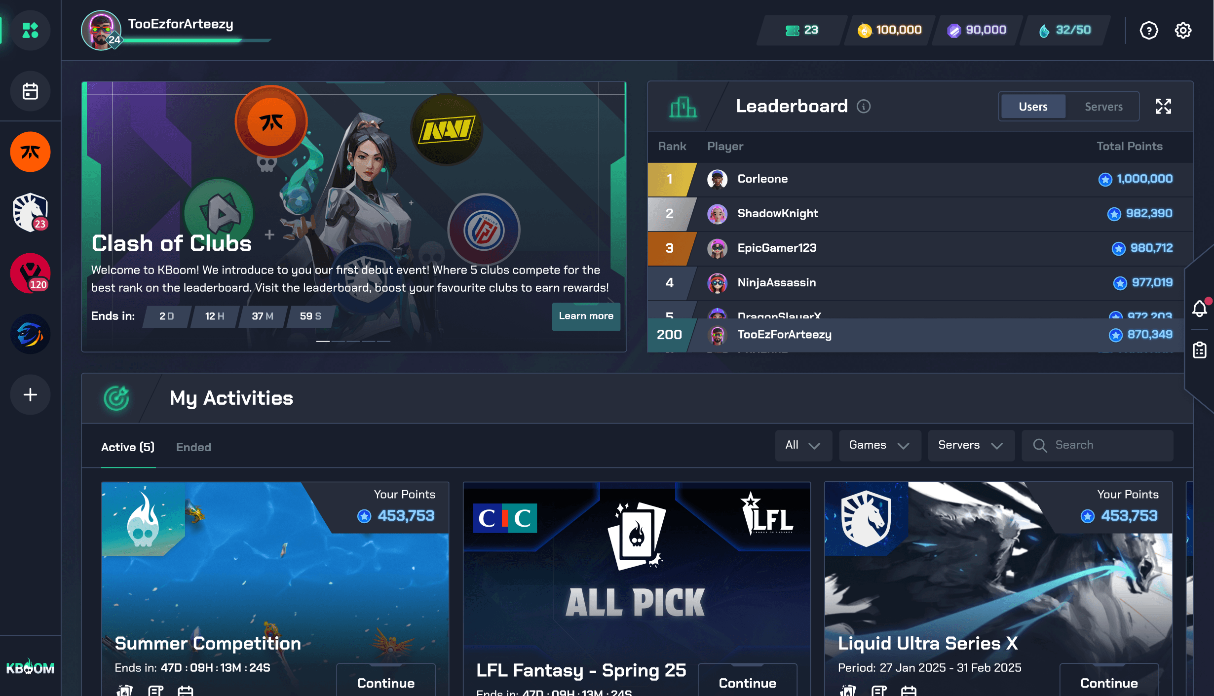 Handling the entire product suite of a esports fan engagement platform connecting fans to the games and esports team they love.