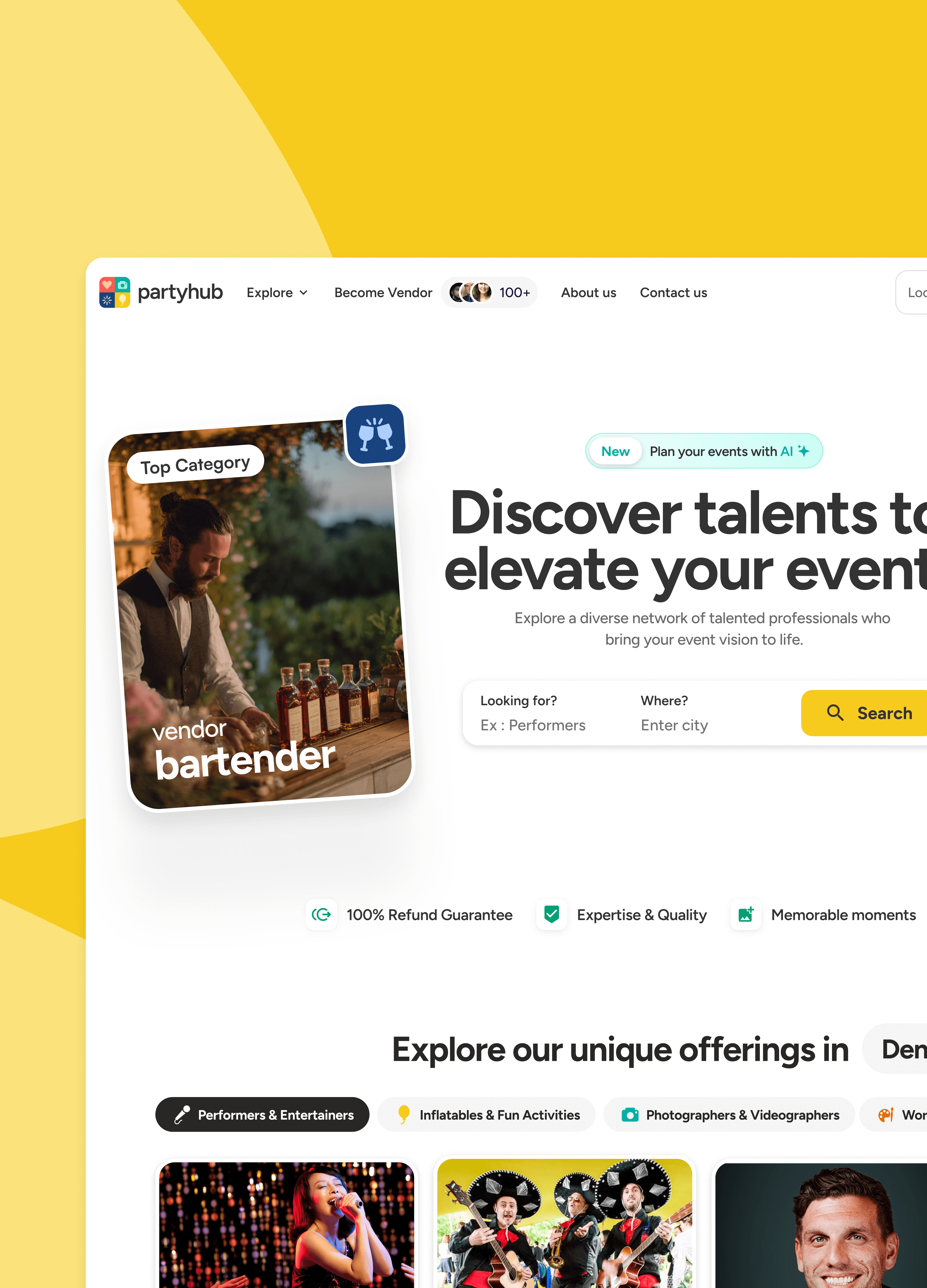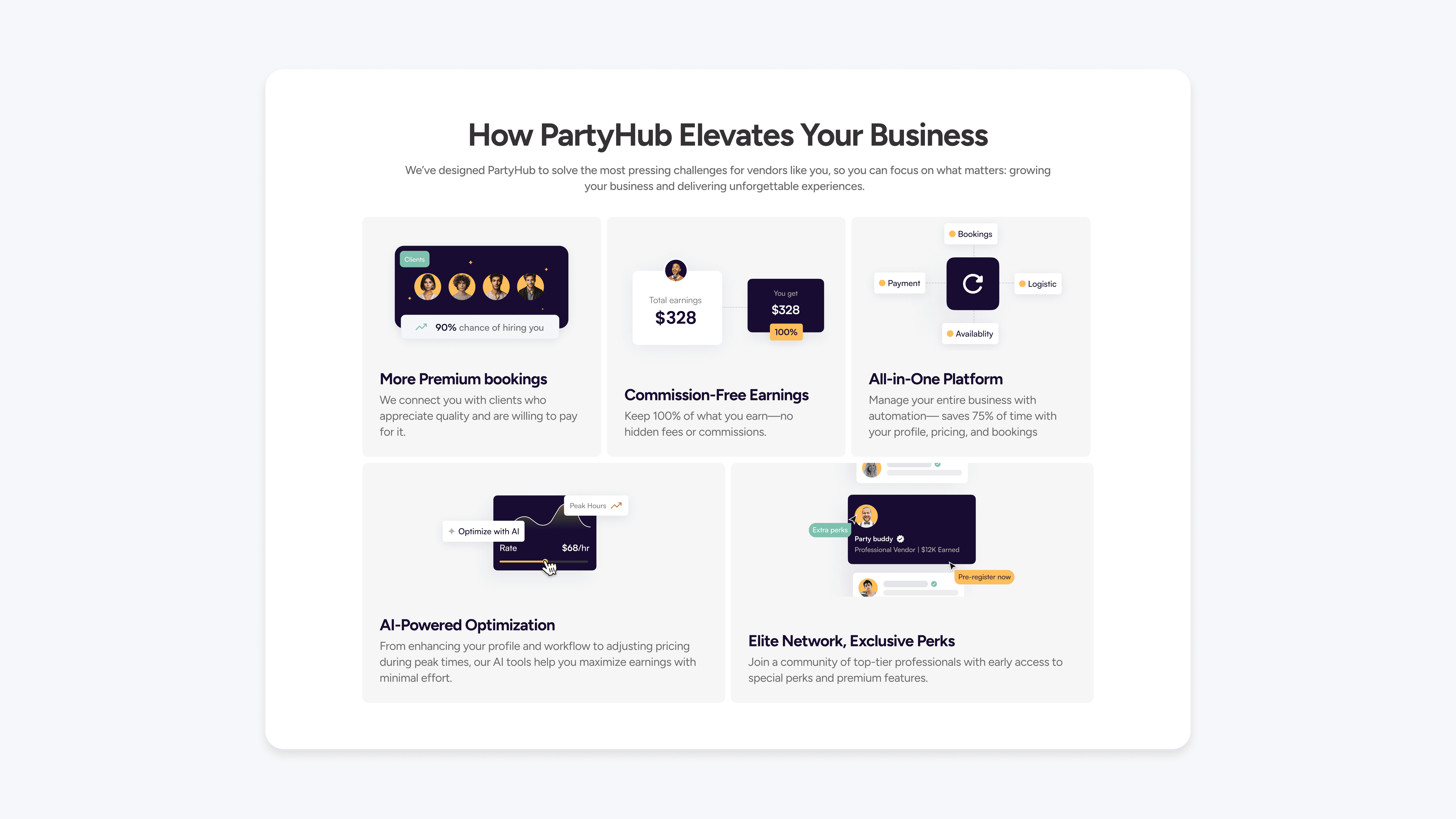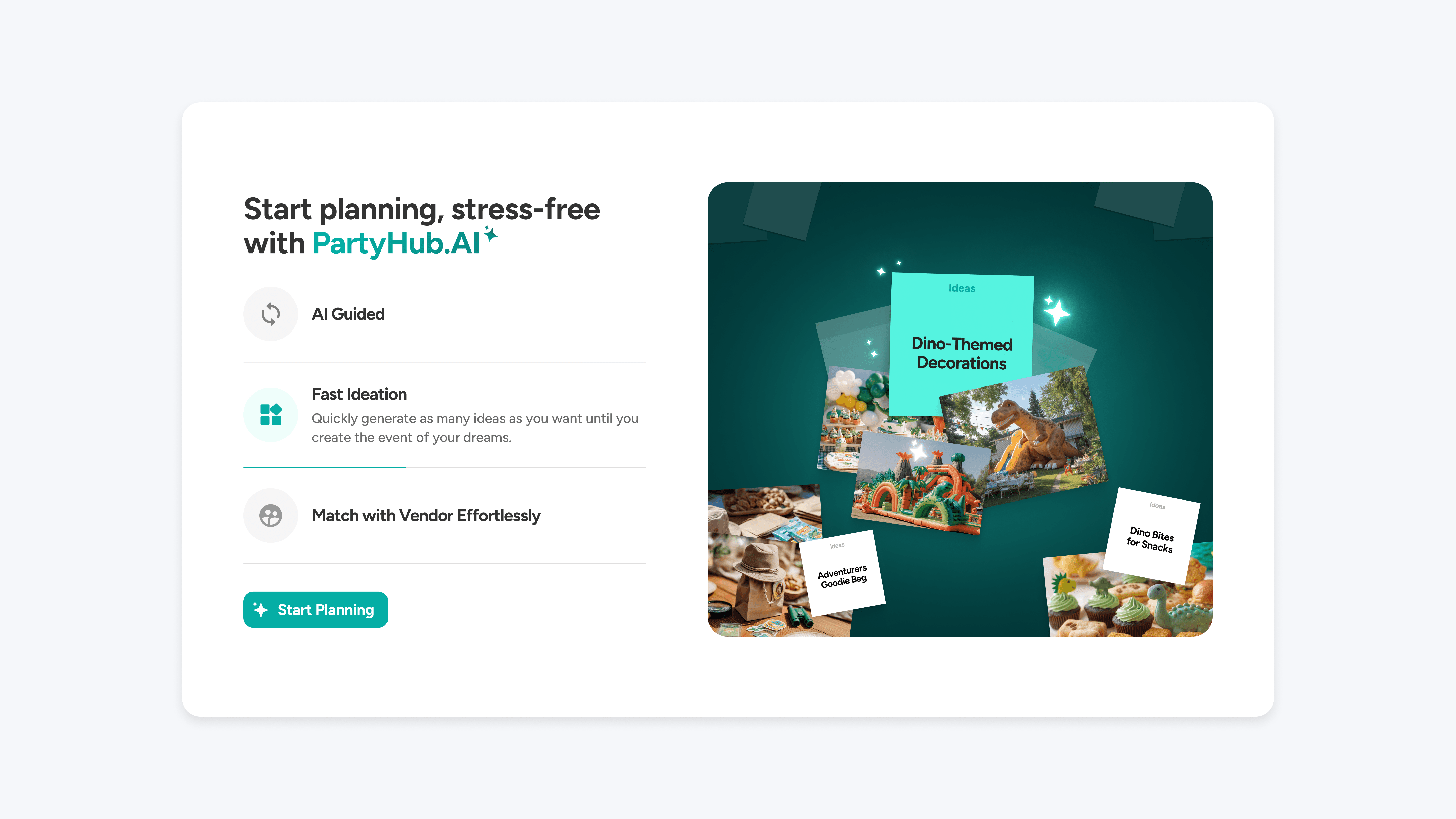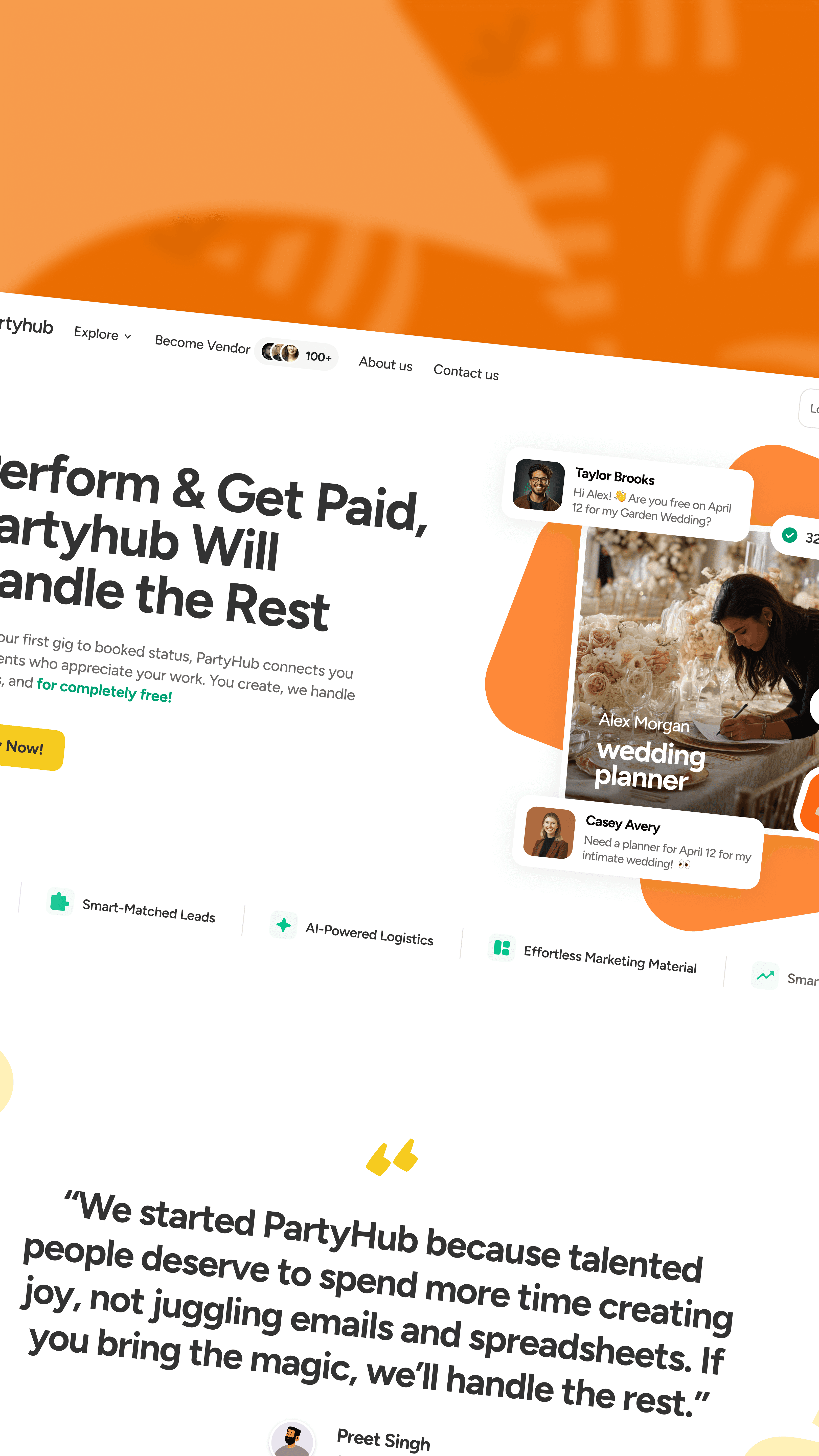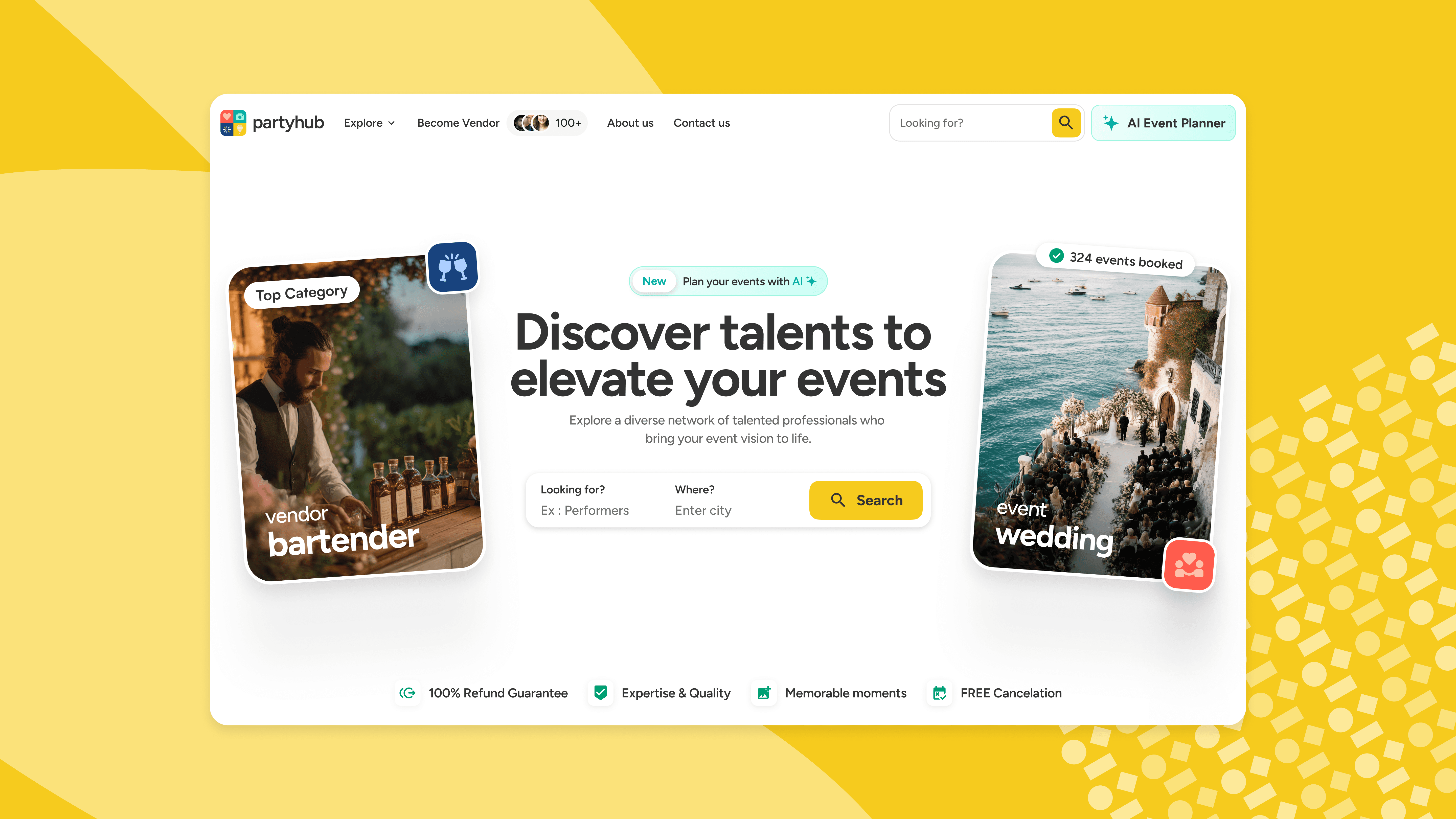 PartyHub is an AI-powered event planning marketplace, connecting users with trusted vendors to plan any kind of gathering, from everyday moments to life's biggest milestones